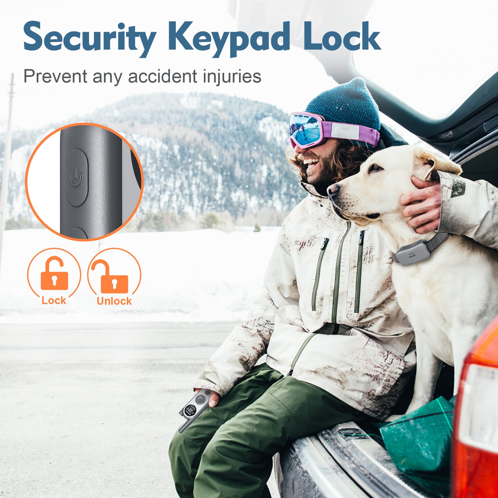 - 【3 Safe Training Modes & Keypad Lock】The shock collars for dogs with 3 safe modes: Beep, Vibrate(1-9 levels) and SAFE Shock(1-30 levels).The remote has keypad lock, which can prevent accidental pressing to give the dog the wrong command